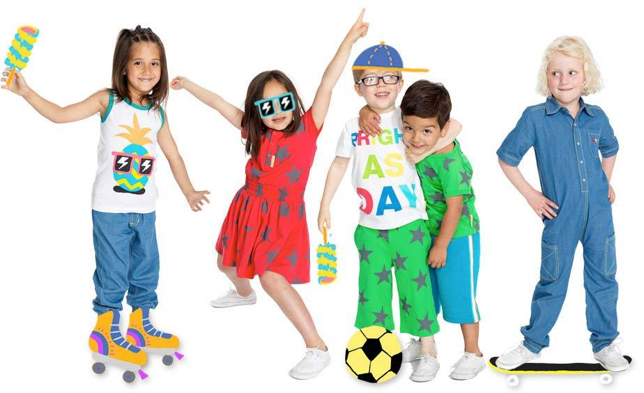 الألوان الزاهية والمبهجة: ستظل الألوان الزاهية موضة دائمة في ملابس الأطفال، مع إضافة لمسات من الألوان الزاهية مثل الأصفر الفاتح والوردي والأزرق السماوي.